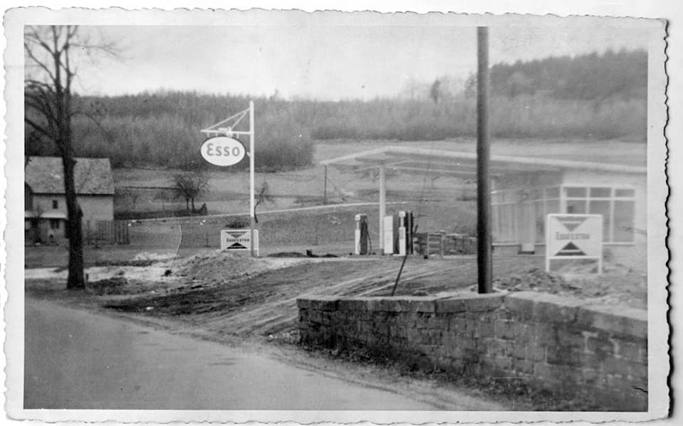 Erwerb des jetztigen Firmengeländes durch Albert Krollius, Bau einer Esso Tankstelle mit kleiner Werkstatt.